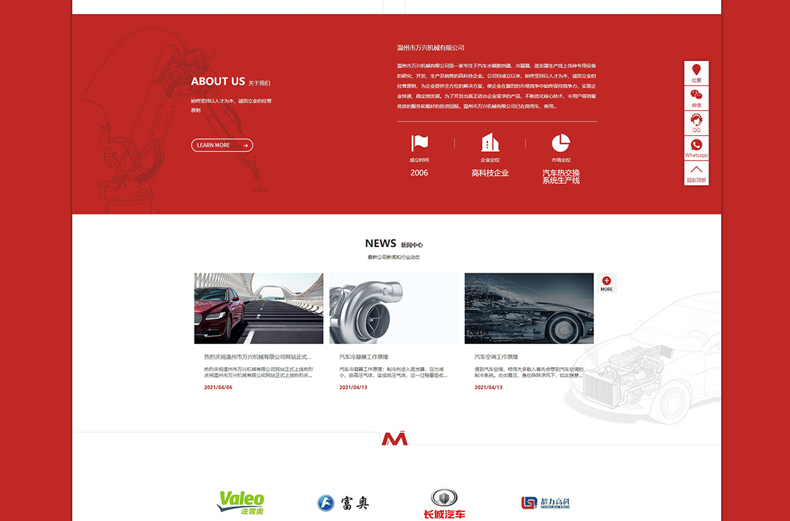溫州市萬興機械有限公司是一家專注于汽車水箱散熱器、冷凝器、蒸發(fā)器生產線上各種專用設備的研究、開發(fā)、生產及銷售的高科技企業(yè)。公司自成立以來,始終堅持以人才為本、誠信立業(yè)的經(jīng)營原則,為企業(yè)提供全方位的解決方案,使企業(yè)在激烈的市場競爭中始終保持競爭力,實現(xiàn)企業(yè)快速、穩(wěn)定地發(fā)展。為了開發(fā)出真正適合企業(yè)需求的產品,不斷優(yōu)化核心技術,令用戶得到優(yōu)質的服務和好的投資回報。