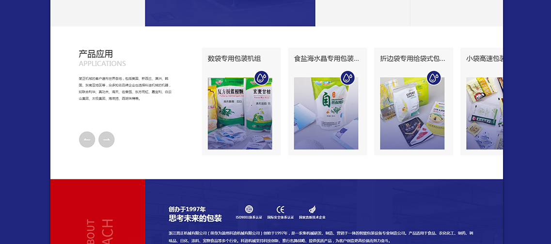 浙江簡正機械有限公司(前身為溫州科迪機械有限公司)創始于1997年,是一家集機械研發、制造、營銷于一體的智能包裝設備專業制造公司。產品適用于食品、農化化工、制藥、調味品、日化、涂料、寵物食品等多個行業。簡正機械堅持科技創新、推行名牌戰略、提供優質產品,為客戶創造更高價值而努力奮斗。