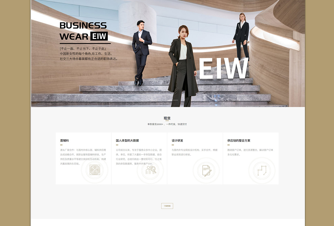 意威服飾于2014年3月25號成立,多年來,堅持服務同行,服務品牌商,渠道商,已成為國內知名的現(xiàn)貨職業(yè)裝一站式供應鏈平臺。