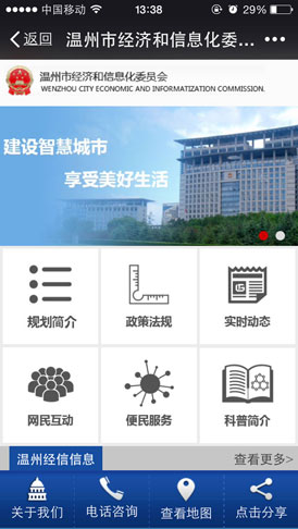 近日,由溫州市經(jīng)信委主辦的“溫州智慧城市”微信公眾平臺將正式上線運(yùn)行,市民只要打開微信,查找并關(guān)注“溫州智慧城市”微信公眾號(wzzhcs)或直接掃描二維碼,便可準(zhǔn)確查詢交通、旅游、社保、出入境、房產(chǎn)、教育、圖書館、各大醫(yī)院等智慧城市建設(shè)成員單位所提供的大多數(shù)便民信息服務(wù)。