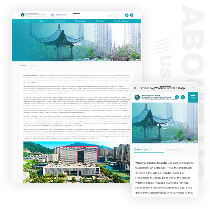 溫州市人民醫(yī)院于1913年9月建成開診,是浙江省最早的西醫(yī)醫(yī)院之一。建院一百多年,已成長為一家集醫(yī)療、教學(xué)、科研、康復(fù)、預(yù)防保健于一體,歷史文化底蘊(yùn)深厚、醫(yī)療科研實(shí)力雄厚的三級甲等綜合性醫(yī)院。既有突出的綜合實(shí)力、又有鮮明的??铺厣?,在浙南閩北地區(qū)享有較高的知名度與美譽(yù)度。立足新時(shí)代煥發(fā)新生機(jī),醫(yī)院全力打造集綜合學(xué)科、特色專科、互聯(lián)網(wǎng)醫(yī)療三位一體的現(xiàn)代數(shù)字化城市醫(yī)療綜合體。醫(yī)院每年平均有百余項(xiàng)國家及省市級課題立項(xiàng),年發(fā)表論文250余篇(其中SCI 30余篇),每年獲批專利100余項(xiàng),總專利數(shù)量已超過1000項(xiàng)。