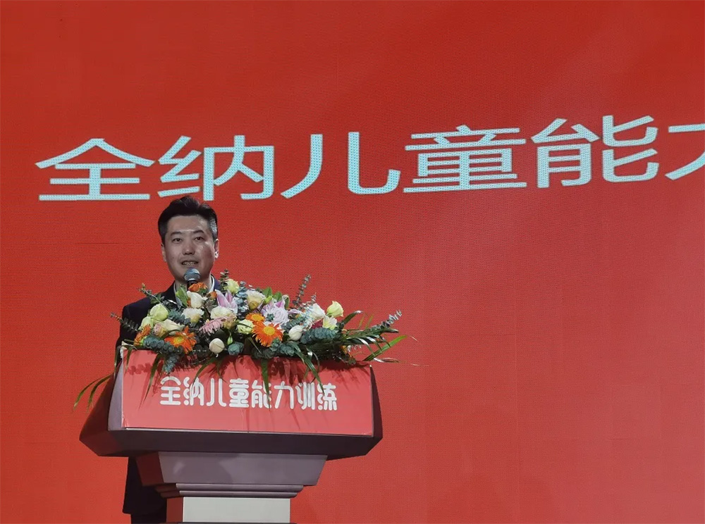 在發(fā)布會(huì)開場(chǎng),全納總裁翁亦奇老師首先上臺(tái)致辭,對(duì)于本次品牌升級(jí)發(fā)布會(huì)做出了肯定,表明品牌的設(shè)計(jì)方式是在傳承全納理念和文化的基礎(chǔ)上,變得更加的時(shí)尚,更加有調(diào)性。同時(shí)將結(jié)合全納課程的特點(diǎn),做出適合全納的教學(xué)管理體系。闡述了在雙減政策下打造中國兒童能力訓(xùn)練與素質(zhì)教育大品牌的機(jī)遇和決心!