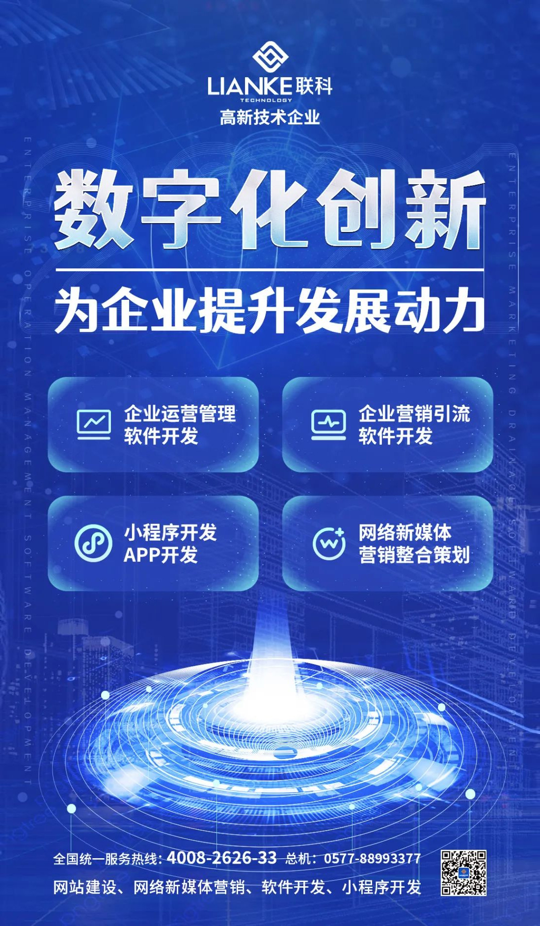 溫州市聯(lián)科科技有限公司成立于2002年,主要從事互聯(lián)網(wǎng)應(yīng)用軟件開發(fā)和網(wǎng)絡(luò)營銷策劃推廣,業(yè)務(wù)包括網(wǎng)站開發(fā)、小程序開發(fā)、APP開發(fā)、新媒體(微信、抖音、百度)整合營銷策劃、外貿(mào)推廣等。產(chǎn)品包括品牌定制型網(wǎng)站系統(tǒng)、四網(wǎng)合一自適應(yīng)網(wǎng)站系統(tǒng)、智立方全網(wǎng)營銷系統(tǒng)、智慧醫(yī)院網(wǎng)站系統(tǒng)、學(xué)校網(wǎng)上辦事大廳系統(tǒng)、在線教育培訓(xùn)系統(tǒng)、迎客精靈小程序商城系統(tǒng)、智慧教培門店運(yùn)營系統(tǒng)等。
