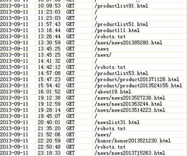 第三,綜合的指導(dǎo)。經(jīng)常性我們在日志里可以發(fā)現(xiàn)一些返回值不是200的條目,而通過日志的返回值我們就可以很容易地找到,這個頁面,并且對于這個頁面的錯誤或者不足進(jìn)行修改。而通過對于網(wǎng)站每天日志的對比記錄,我們可以發(fā)現(xiàn),蜘蛛每天來網(wǎng)站的次數(shù)是增加了還是減少了。如果增加了,是一些友好的IP還是不好的IP,這些記錄又是從哪個入口進(jìn)入的。從而分析出我們在日常的網(wǎng)站SEO工作中,在哪些方面是做得比較好的,哪些方面是不足的。