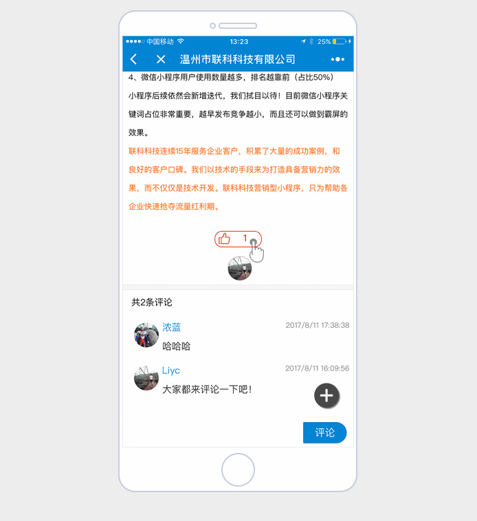實現對某篇文章或內容進行點贊并統計,與用戶產生交互關系,提高用戶粘度。
