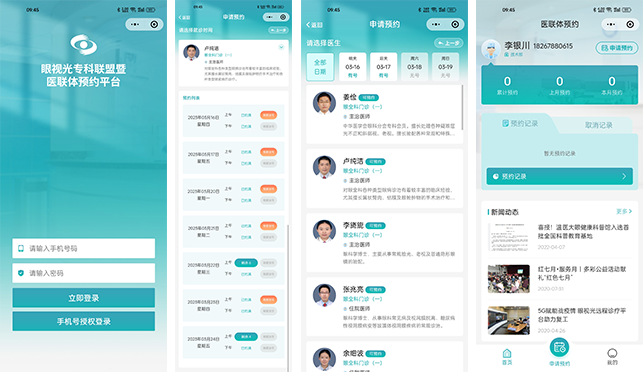 醫聯體預約平臺小程序是溫州醫科大學附屬眼視光醫院為下級基層門診醫生提供的移動端快速預約的小程序平臺。主要是方便基層醫生根據病情為患者選擇眼視光醫院對應科室或醫生的門診并快速預約。包括已入駐醫生手機號快速登錄、加號預約、歷史患者信息快速錄入等功能,通過更好用戶體驗方便醫生為患者提供優質的診療服務。